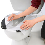 Kadar je le mogoče, na WC školjko položimo zaščito za enkratno uporabo in se usedemo. Le sedeč položaj omogoča sproščene mišice in popolno izpraznitev mehurja.